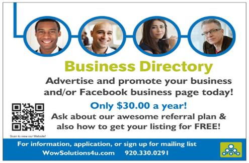 Helping Your Business Do More Business! Arbonne Pure, Safe & Beneficial- Inspired by Nature Nicole Machalk District Manager- Independent Consultant nicolemachalk.arbonne.com facebook.com/ArbonneByNicoleM nmachalk@gmail.com 480.370.9976 Cakes Kakes by Korth Creating Wedding Cakes To Remember Serving The Fox Cities for nearly 20 Years Sally Korth Owner N5331 Mayflower Rd Shiocton www.kakesbykorth.com www.facebook.com/Kakes-by-Korth sally@kakes bykorth.com 920.986.3442 Chapel Country Chapel Wedding Ceremonies - Elopements Vow Renewals - Baptisms Brenda Kuehnl Owner W2841 Brookside Drive Freedom, WI 54913 www.Country-Chapel.biz countrychapel1@aol.com 920.450.2398 Clothing Honey & Lace Cassandra Margitan Fashion Consultant cassandralularoe@gmail.com 920.606.7494 Clothing LuLaRoe Where Fahion Meets Comfort! Contact me if you are interested in having a Pop up Party and getting FREE LuLaRoe Katie Brown Fashion Consultant www.mylularoe.com/join/katiebrown1 www.facebook.com/groups/lularoekatiebrown LuLaRoeKatieBrown1@gmail.com 920.445.3434 Fireside Realty, LLC Wanna Buy or Sell? Text or Call Dawn Michele! Dawn Michele Krause Realtor 920.606.8693 Health & Beauty Younique By Trish Be You...Be Younique Trish Bakalars Independent Presenter 1913 Easy St Waukesha, WI 53188 www.Trishs3DLashes.com www.facebook.com/TrishB.Younique TBakalars01@gmail.com 262.424.5474 Health & Beauty Perfectly Posh Naturally based pampering products for your face & body made in the USA -cruelty free Everything under $25.00 Julie Kasbeer Independent Consultant www.perfectlyposh.com/juliekasbeer jkasbeer@yahoo.com 414.418.6412 Health & Beauty B Naturals Hand crafted skin care products made in small batches, from my home to yours. All-natural and refreshingly simple ingredients for happy, healthy skin. Jennifer Lane Owner/Creator/Designer Green Bay, WI www.bnaturalsbodycare.weebly.com www.facebook.com/bnaturalsbodycare bnaturalsbodycare@gmail.com Health & Beauty Monat Natural Anti-aging Hair care products . Our promise is longer, fuller, stronger, younger-looking hair... with a 30 day money-back guarantee. Looking for people in your area to join my team! Cindy Schahczinski Associate Market Builder Cindyski.mymonat.com www.facebook.com/RevitalizedHairByCindy cindyluloo35@aol.com 906.290.4188 Health & Wellness Ultimate pH Water No More Need To Buy Bottled Water--- Now you and your entire family can enjoy all of the benefits- drinking, pets, plants, food prep- coffee- cleaning etc 801 Hertitage Rd Suite E5 - E DePere Free 2 Week Trial ultimatephwater.com - Info-Free ebook demo.ultimatephwater.com - Demo team.ultimatephwater.com - Business webinar.ultimatephwater.com-Webinar 920.330.0291 Health & Wellness Le-Vel Helping people live the life they deserve Physically with the THRIVE Product line, and Financially by promoting THRIVE and the THRIVE 8 Week Experience. Contact Me to Start Thrivin' or Join My Team! Nicole Tuma Independent Brand Promoter NicoleTuma.Le-Vel.com Ryan9812345@hotmail.com 920.585.1282 Holistic Health Key Elements for Health Find Balance Manage, Maintain & Restore your Health in a gentle, safe & effective way Gail Okray Owner 2701 Larsen Rd Green Bay, WI 54303 keyelementswi.com gailjsj@gmail.com 920.366.1896 Jewelry Lilla Rose Hair Accessories Melani Vanden Avond www.lillarose.biz/melani 920.246.6434 Jewelry Paparazzi Everything is only $5.00 Rochelle Bursa Consultant paparazziaccessories.com/54600/ rochellebursa@gmail.com 920.373.4566 Jewelry Touchstone Crystal By Swarovski Pam Kelly Independent Consultant 1941 Horseshoe Ln De Pere, WI 54115 www.mytouchstonecrystal.com/pamkelly4glam pamkelly4glam@gmail.com 920.639.2802 Locksmith Don's Lock Service Commercial/Residential Don Bale 920.339.0574 Marketing Solutions Email marketing, Facebook promotions, coupons, donations, event promotions, business cards etc 15% off select products Ask how to also receive a Free Business Directory Listing 920.330.0291 Mary Kay Skin care products for men and women of all ages! Mary Van Vonderen Independent Beauty Consultant 2365 Shirley Rd DePere, WI 54115 www.marykay.com/mlvanvonderen mlvanvonderen@marykay.com 920.403.7430 Mary Kay Cosmetics #1 Brand of Skin Care and Color Cosmetics Joan Sternhagen Senior Sales Director www.marykay.com/jsternhagen www.facebook.com/jonijsternhagen/ jjewels51602@gmail.com 920.766.5691 Norwex Making a difference by reducing chemical usage Wanda Johnson Independent Consultant www.WandaJohnson3114000.norwex.biz wandajjohnson1@gmail.com 920.716.8576 Photo Booth Services Let Loose Photo Booths Capture Some Memories! Brianna Diestler/ Eric Baesemann Owners www.letloosephotobooths.com letloosebooths@gmail.com 920.207.2426 Rodan & Fields Tennille Nowak Skin Solutions for Everyone - Life-Changing Skincare Created by Dermatologists -Satisfaction Guaranteed mywebsite 763.242.6219 Transportation Heritage Limousine Superstretch Limousines & SUV's Howard Marquardt Owner 129 E Main St P.O. Box Gillett, WI 54124 www.HeritageLimousine.com Howard@HeritageLimousine.com 920.855.6166 Wild Tree Wildtree products are perfect to SEASON your life! Sara Marchant Sales/Marketing www.mywildtree.com/saramarchant facebook.com/SarasWildtreePage/ wildtreewithmetoday@gmail.com 920.362.1577 Your Business And or Your Facebook Business Page |